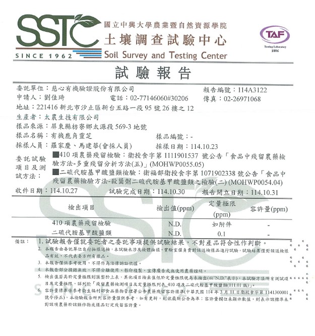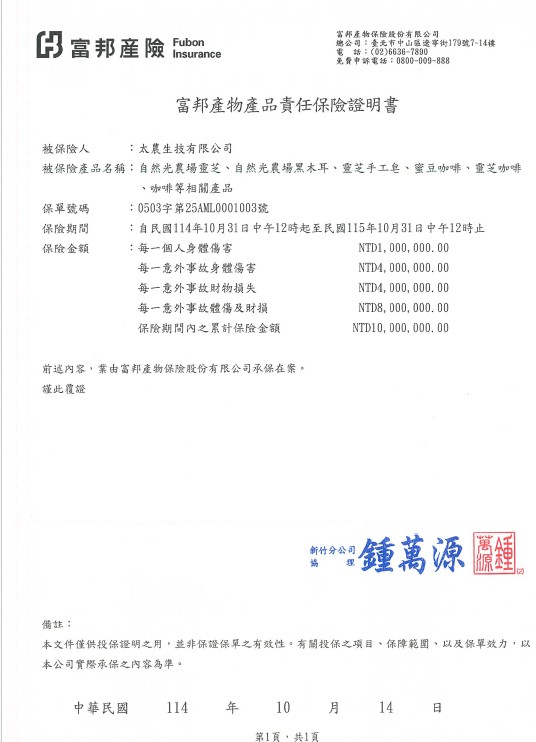 慈心有機證書、產品投保、興大檢驗合格